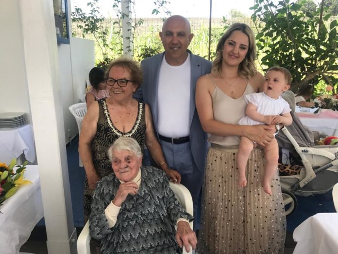 Gli auguri della cittadina naxiota alla nonnina centenaria, Elide Pezzani, capostipite di cinque generazioni