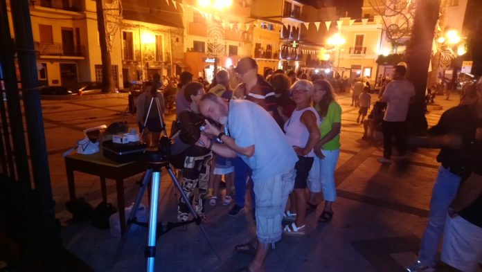 Giardini – Naxos – (di redazione) Dalla piazza della chiesa dell’Immacolata si è aperto un ideale “stargate” verso la Luna. Si è registrata, infatti, una grande partecipazione di appassionati astrofili ad un appuntamento che ha voluto celebrare un momento storico. Sono stati numerosissimi, appunto, quanti hanno preso parte a “Tocca la Luna con…un dito, osservazione del satellite a 50 anni dallo sbarco”. Un’ iniziativa questa realizzata in collaborazione con la sezione culturale di Aiace, che ha voluto ricordare lo sbarco dell’”Apollo 11″, a mezzo secolo di distanza dal viaggio stellare. È stato un vero successo visto che nella piazza antistante la chiesa della frequentata parrocchia, ubicata, appunto, nel quartiere di San Giovanni, il prof. Manlio Passalacqua, ha spiegato i dettagli dell’allunaggio, mettendo a disposizione di quanti hanno partecipato a questa iniziativa di studio, numerosi telescopi per l’osservazione della Luna ed anche di Giove e Saturno. Passalacqua con dovizia di particolari ha spiegato tutte le fasi dell’arrivo degli astronauti sul satellite terrestre. Hanno svolto un importante supporto tecnico e scientifico il professore, Franco Vinciguerra ed il preciso, Sandro La Spina.  L’iniziativa, com’è noto, ha fatto da corollario alle attività del “Grest”, proposte e coordinate dal parroco, Eugenio Tamà, da sempre attento alla formazione dei bambini e alle attività scientifiche connesse. Si è concluso così un autentico viaggio interstellare che ha suscitato notevole interesse. Un momento commemorativo  e di studio sicuramente importante che ha impreziosito una delle belle serate della cittadina naxiota.